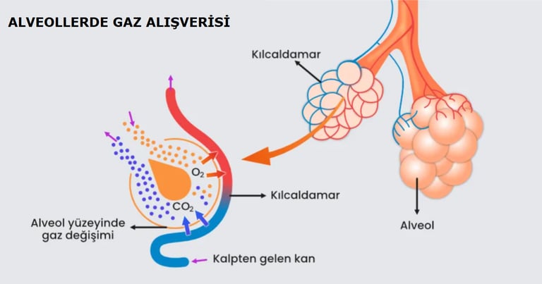 Gaz Değişimi: Oksijenin kana geçmesi, karbondioksitin dışarı atılması.