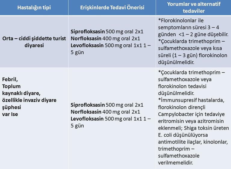 Özel Durumlar: Yaşlılar (>65 yaş), turist ishali, antibiyotiğe bağlı ishal, immün yetmezlikli hastalar, kolera şüphesi.
