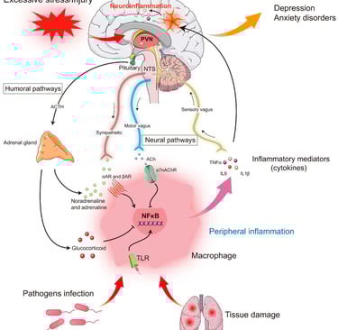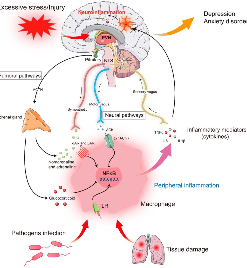 Vücudumuzdaki stres (ister psikolojik ister fiziksel olsun), bağışıklık sistemini tetikleyerek sitokin adı verilen (IL-1β, IL-6, TNF-α) haberci molekülleri salar.