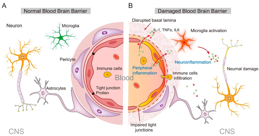 Kan-Beyin Bariyeri (BBB) İhlali: Normalde beyni koruyan bu bariyer, kronik enflamasyon altında geçirgenleşir.