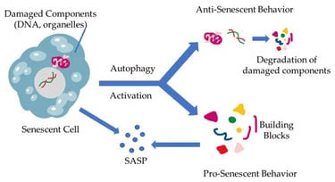 Tehlike: Otofaji, hücre içi proteinleri parçalayarak amino asit ve enerji üretir. Ancak senesans bir hücre, bu enerjiyi kendini onarmak için değil, daha fazla SASP (toksin) üretip salgılamak için kullanır.