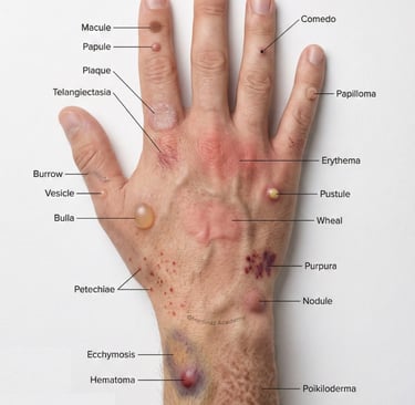 9. Wheal (Ürtiker Plağı): Geçici dermal ödem. Histamin deşarjı (Mast hücresi aktivasyonu - MCAS). 24 saatten kısa sürer, yer değiştirir.