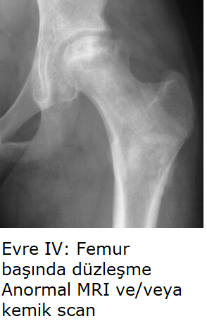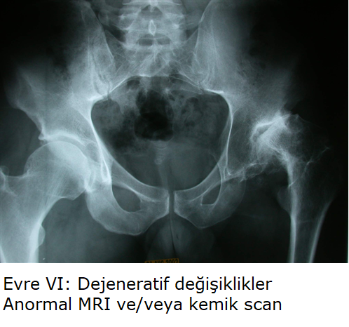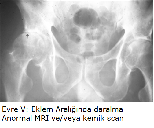 Evre IV: Eklem aralığında daralma, ileri osteoartrit. Terminal safha.