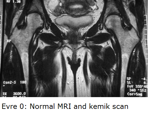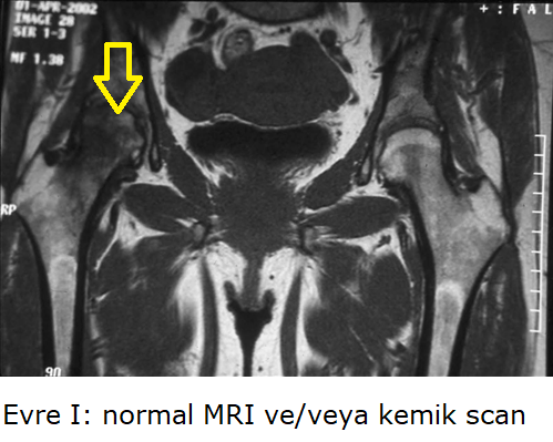 Evre 0: Röntgen ve MR normal. Semptom yok / Şüphe. (LR+ = 1.0)