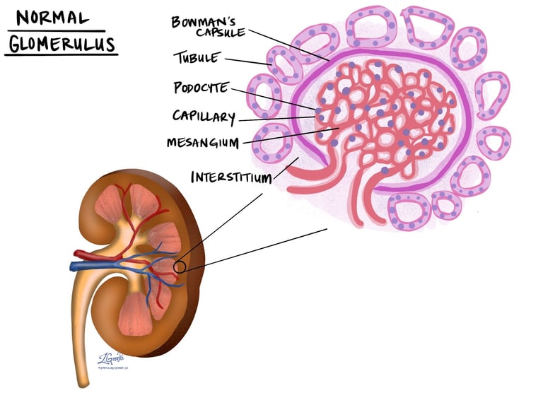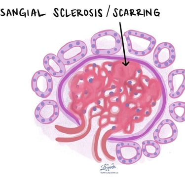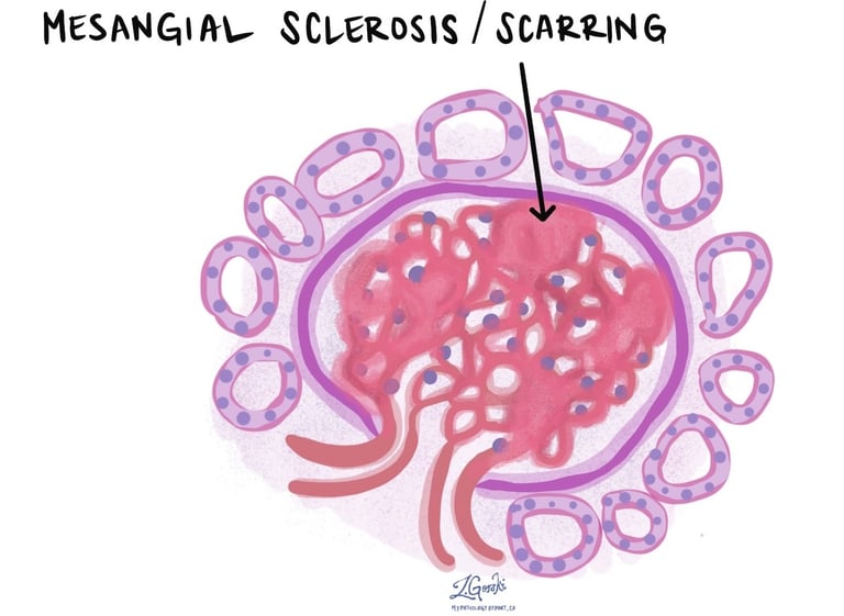 Bu durumlar, glomerüler damarlarda kronik stres ve hasara yol açarak mezanjiyumda fibrotik doku birikimi oluşturur.
