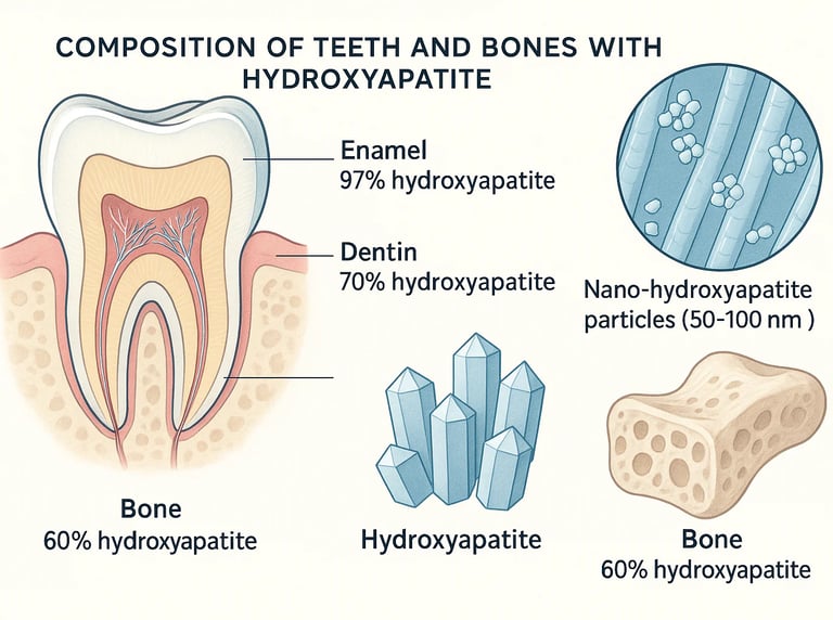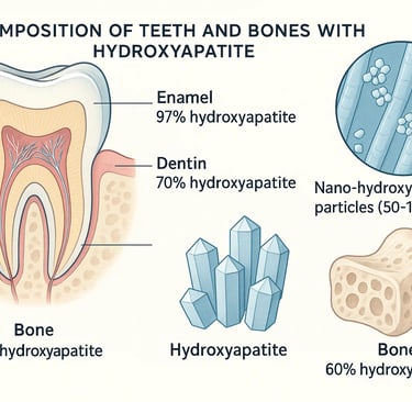 Hidroksiapatitin Yapısı: Hidroksiapatit (HA), kemiklerin ve diş minesinin sert dokusunu oluşturan bir kalsiyum fosfat mineralidir. Kimyasal formülü esasen Ca10 (PO4)6 (OH)2 şeklindedir.