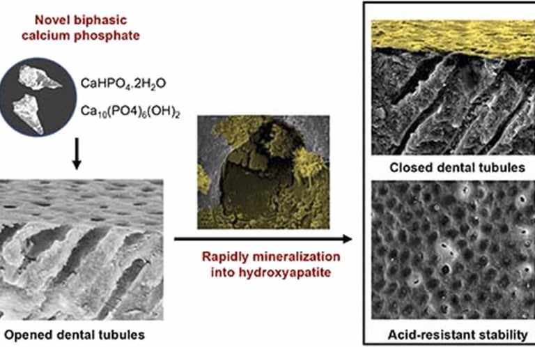 Kalsiyum fosfat, bu yetersizliği çözmek için odontolojinin bulduğu ideal bileşiktir. Uygulandığında, mineye ve plağa yapışarak ihtiyaç duyulan yerlere kalsiyum ve fosfat iyonlarını doğrudan taşır. Bu sayede, kalsiyum fosfat, tükürüğün doğal remineralizasyon etkisini taklit eder ve tamamlar, böylece minenin yapısının güçlenmesine yardımcı olur.