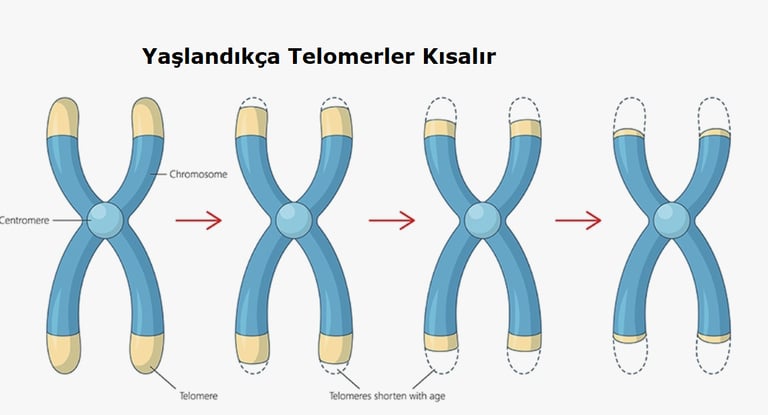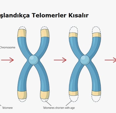 Hücre her bölündüğünde, kromozomların ucundaki "Telomer" adı verilen koruyucu (TTAGGG) dizilimleri kısalır. Telomerler bittiğinde hücre bölünmeyi durdurur ve zehirli bir "Zombi"ye (Senesent hücre) dönüşür. Buna Hayflick Sınırı denir.