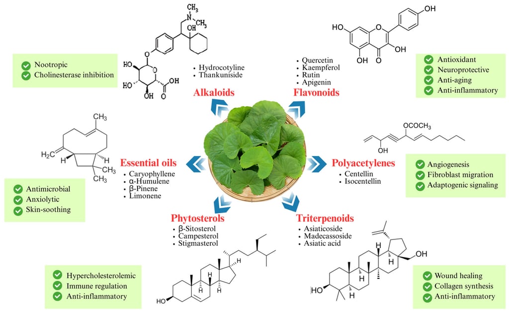 Gotu Kolanın içeriğindeki tıbbi bileşenler (metabolitler)