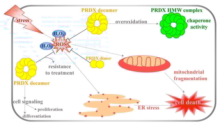 PRDX, aktif merkezindeki sistein kalıntısının farklı redoks durumlarına geçebilme yeteneği sayesinde antioksidanlığın ötesinde roller üstlenir: