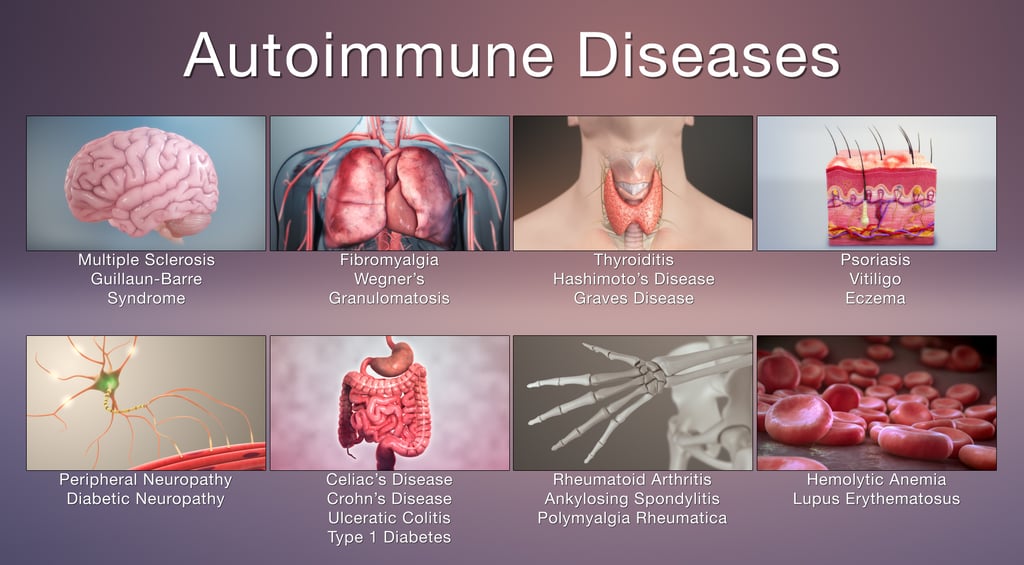 Aşağıdaki liste, modern tıbbın "kendi dokusuna saldırı" olarak tanımladığı tüm cepheleri içerir: