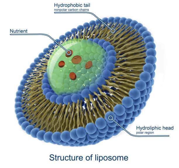 Lipozomlar, hücre zarını taklit eden, dışı suyu seven (hidrofilik), içi ise yağı seven (lipofilik) çift katmanlı fosfolipit kürecikleridir.