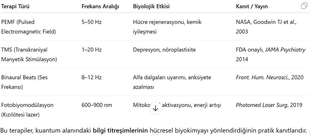 Bu terapiler, kuantum alanındaki bilgi titreşimlerinin hücresel biyokimyayı yönlendirdiğinin pratik kanıtlarıdır.