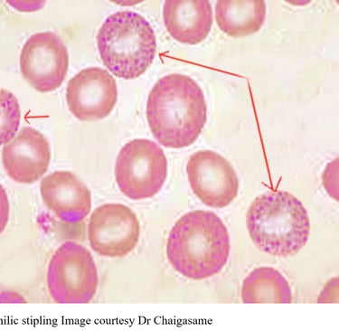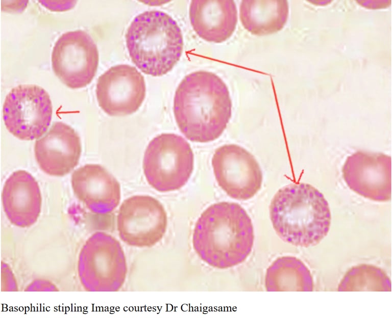 Mikroskopta eritrositlerin içinde "karabiber serpilmiş gibi" mavi noktalar görülür.