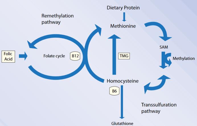 Folat döngüsü bozukluğu: Folat yeterli değilse veya sentetik folik asit yolunu keserse, homosistein metiyonine dönüşemez, döngü durur.