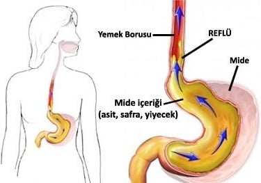 Gastroözofageal Reflü Hastalığı (GÖRH): Mide içeriğinin (asit veya safra) yemek borusuna (Özofagus) geri kaçması sonucu oluşan semptomlar veya mukozal hasar (Özofajit).Göğüste yanma (Pirozis), ağıza acı/ekşi su gelmesi (Regürjitasyon), yutma güçlüğü (Disfaji), kronik öksürük.