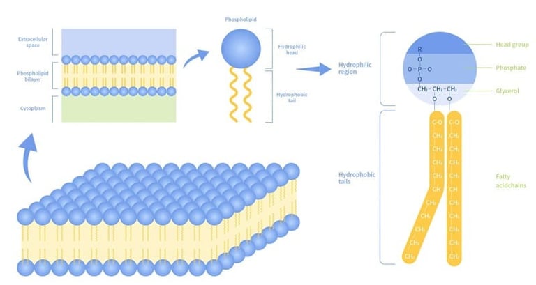 Lipozomlar, iç içe geçmiş bir veya birden fazla zar tabakasından oluşan, su bazlı sıvıları birbirinden ayıran yumuşak kargo araçlarıdır. Bu yapının kalbinde yatan mühendislik harikası, moleküllerin "amfifilik" (hem suyu hem de yağı seven) doğasından gelir. Su bazlı bir solüsyonun içine doğru termodinamik enerjiyle (örneğin sonikasyon) karıştırıldıklarında, hayatta kalmak için kendi etraflarında kapanarak çift katmanlı bir küre (fosfolipid çift tabaka) oluştururlar.