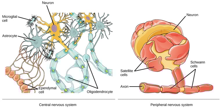 Mikroglia: Sistemin bağışıklık askerleri ve çöpçüleridir. (Alzheimer ve Parkinson gibi nörodejeneratif hastalıklarda aktif rol oynarlar).