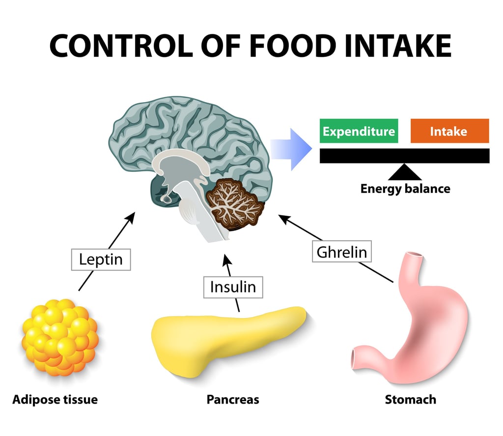 Vücutta enerji dengesi ve iştah kontrolü büyük ölçüde insülin, leptin ve ghrelin hormonları tarafından düzenlenir.