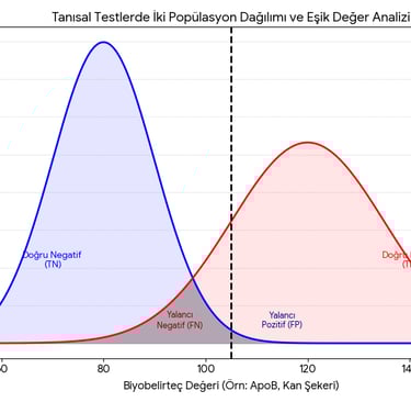 Bir popülasyonu düşünün. Elimizde bir X hastalığı olanlar grubu, bir de 'X hastalığı olmayan' / sağlıklı olanlar grubu var. Her iki grubun biyolojik değerleri (örneğin kan şekeri veya bir marker düzeyi) bir çan eğrisi (Normal Dağılım) şeklinde dağılır.
