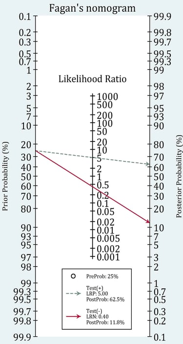 Son Olasılık (Post-test Probability): Fagan Nomogramı üzerinden hesapladığımızda, olasılık bir anda %70'in üzerine çıkar.