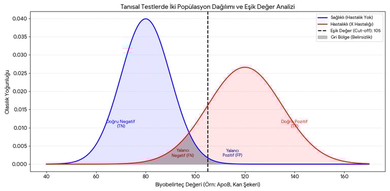 Sorun şudur: Bu iki eğri nadiren birbirinden tamamen ayrıdır. Çoğu zaman bir noktada kesişirler. Bu kesişim bölgesi, tıbbın en zorlu belirsizlik alanıdır: Gri Bölge.