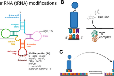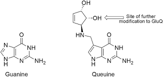 Dönüşüm Süreci: Hücre içine giren Queuine (q), TGT (tRNA-guanine transglycosylase) adındaki muazzam bir enzim tarafından alınır. TGT enzimi, belirli tRNA'ların (Tirozin, Histidin, Asparagin ve Aspartik Asit) antikodon bölgesindeki (34. pozisyon - "wobble" bölgesi) normal bir Guanin (G) bazını söküp çıkarır ve yerine bu modifiye Queuine'i yerleştirir.