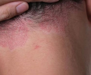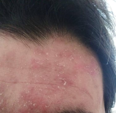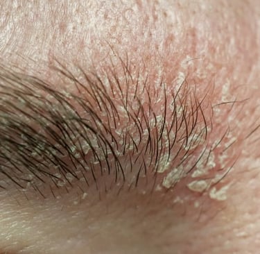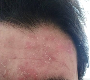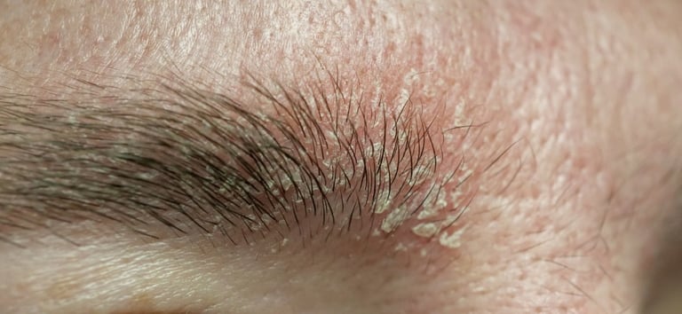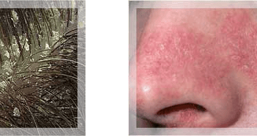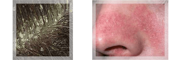 Klasik Seboreik Dermatit: Sınırları belirgin eritemli (kızarık) plaklar üzerinde yer alan sarımtırak, yağlı ve yapışkan skuamlar (pullar).