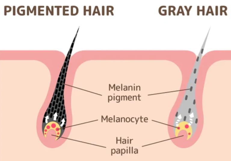 Melanosit Kök Hücre (McSC) Tükenmesi: Artan Reaktif Oksijen Türleri (ROS), melanosit kök hücrelerinin DNA'sına onarılamaz hasarlar verir. Bu kök hücreler apoptoza uğradığında veya nişlerini terk ettiğinde, saç teline melanin aktaracak biyolojik fabrika kalıcı olarak kapanır.