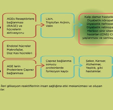 Organ Hasarı: Bu enflamatuar mekanizma ve AGE'lerin doku proteinleriyle çapraz bağlar oluşturması;
