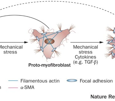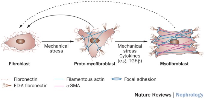 Miyofibroblastlar: Bu hücreler adeta "kontrolden çıkmış inşaat işçileridir". Normalde geçici olması gereken kolajen sentezini durdurmazlar. Dokuyu büzen ve sertleştiren alfa-smooth muscle actin (alpha-SMA) eksprese ederler.
