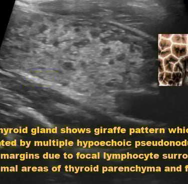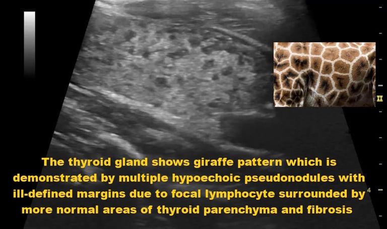 Ultrason (Psödonodüler Görünüm) LR+ 8.5 LR- 0.2 Tiroidin "güve yeniği" manzarası; doku yıkımının kanıtıdır.