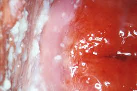 Akıntı: Tipik olarak kokusuz, beyaz, kesilmiş süt veya peynir kıvamında (curd-like) akıntı.