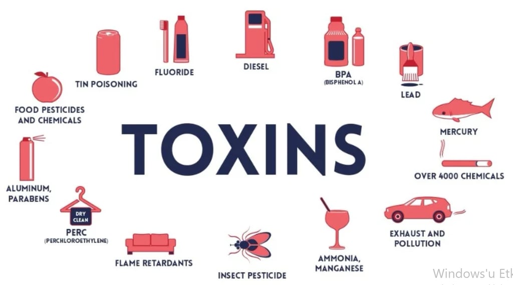 Dış Toksinler: Civa, kurşun, alüminyum gibi ağır metaller; brom, klor gibi toksik halojenler; pestisitler, hazır gıdalardaki kimyasallar, hormon benzeri maddeler ($Bisfenol-A$ gibi) ve elektromanyetik kirlilik. Toksinler ağız, solunum yolu (egzoz, amalgam dolgular) ve ciltten (kozmetikler, deterjanlar) emilerek vücuda girer.