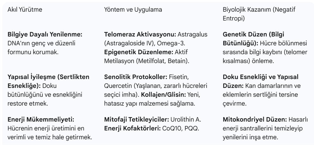 Nihai Hedef (Negatif Entropi): Bu protokol, biyolojik sistemin termodinamik dengeden uzaklaşarak (pozitif entropiden kaçarak) daha düzenli, daha bilgili ve daha yapısal bütünlüğe sahip bir duruma (negatif entropi) geçişini sağlamaktır.